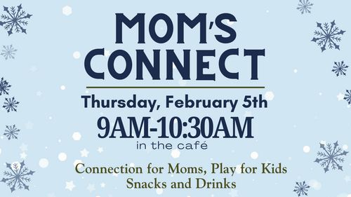 On the first Thursday of the month, join us for Mom's Connect. No Connect in January. We gather in the Cafe from 9AM to 10:30AM at KCC. This is a time to connect with other moms while kids play. Meeting in the KCC Café. Next date: February 4. There will be snacks and a bouncy house.