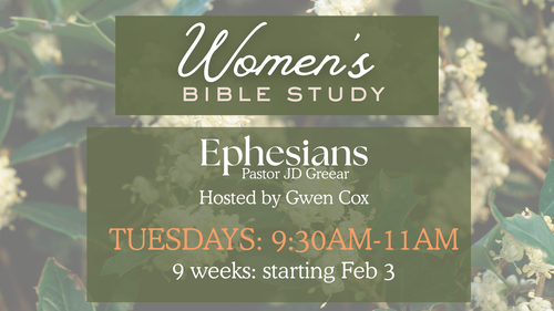 Women's Bible Study: Ephesians with JD Greear, hosted by Gwen Cox. Tuesdays 9:30AM-11AM. Starting Feb. 3 and meeting for 9 weeks. In Room 201. Register online or email rachaelp@klamathchristiancenter.org to sign up.https://subspla.sh/22h2n8h