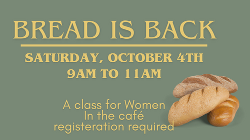 Women are invited to spend a morning learning about bread with Cam Loken. Bread is referenced over 38 times in the Bible. Cam will demonstrate the process of making home-milled bread and have samples to try. Come learn how to “get healthy with bread.” Check out Events page to sign up.